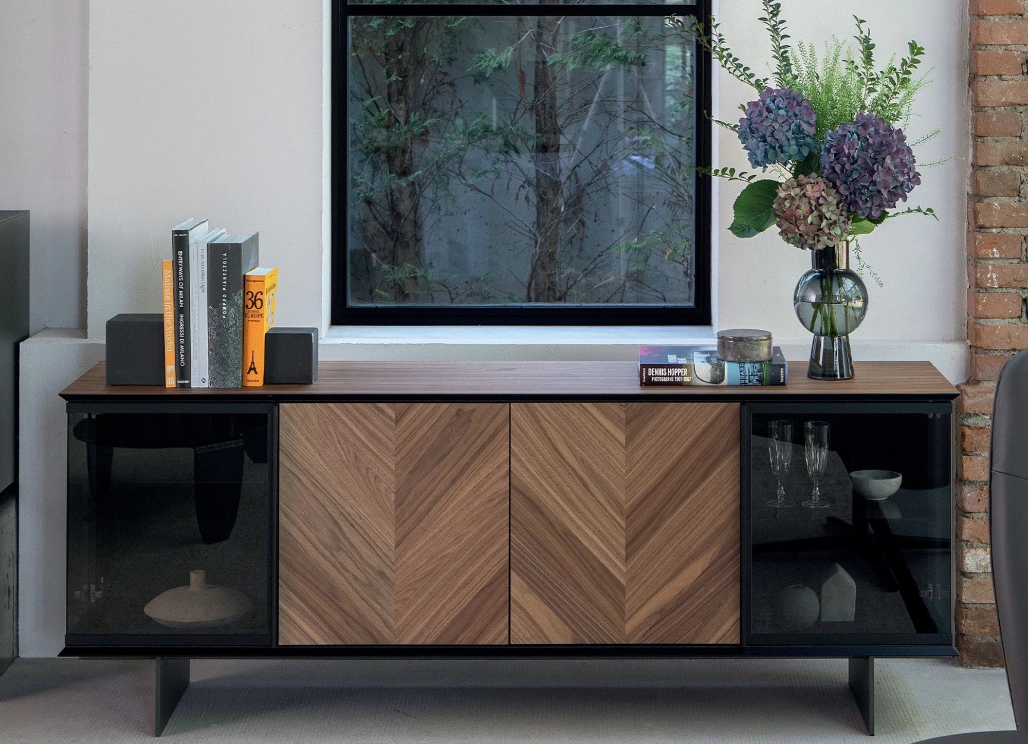 La parola Aira deriva dall’arabo e significa “splendente”, aggettivo che ben si addice alla raffinata eleganza di questa madia che, con ante in gres e dotata di led interno, è in grado di far brillare qualsiasi spazio abitativo. L’inedita apertura laterale delle due vetrine ai fianchi della madia conferisce un’identità precisa al suo esclusivo design.