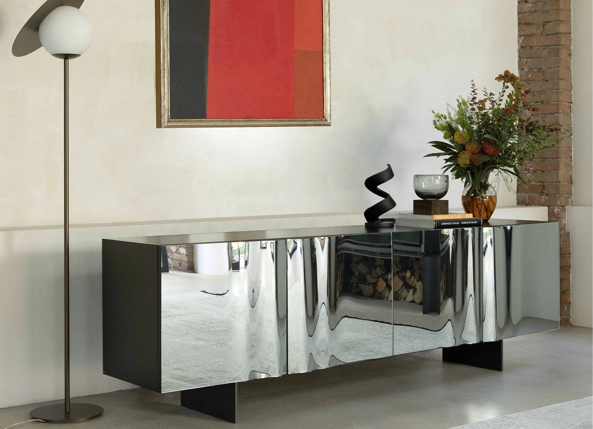 La lieve brezza dell’eleganza può soffiare in qualunque stanza con la madia Anemos, il cui nome allude al vento che sembra muovere l’elemento specchiante. Un pezzo dal design intriso di fascino, che testimonia la continua ricerca di tecniche di lavorazione uniche e preziose.